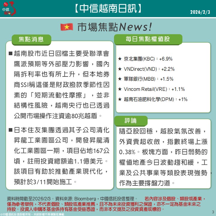 越南股市近日回檔主要受聯準會鷹派預期等外部壓力影響,國內隔拆利率也有所上升,但本地券商SSI稱這僅是財政撥款季節性因素的「短期流動性摩擦」,並非結構性風險,越南央行也已透過公開市場操作注資逾80兆越盾。
