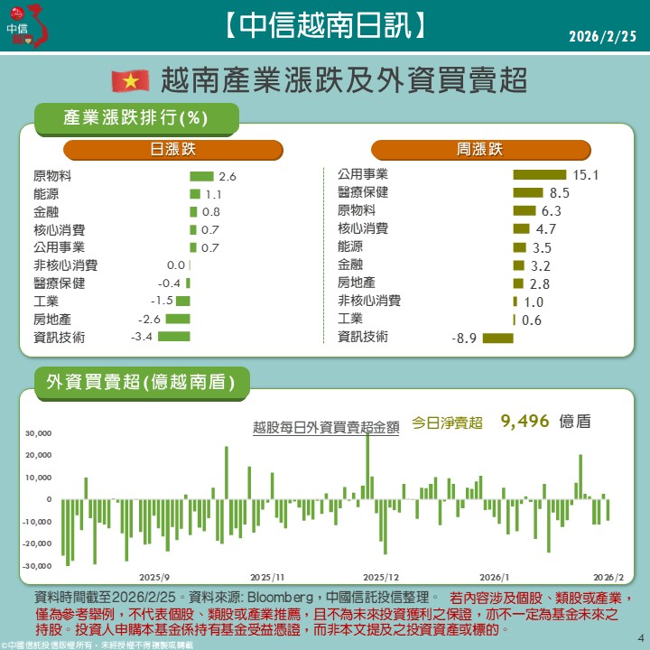越股開市連兩日上漲後,今日行情回歸溫和,指數多在平盤下方窄幅震盪,終場小跌0.36%。權值地產拉回較明顯,惟其餘類股如原材料、能源及工業股仍展現韌性。