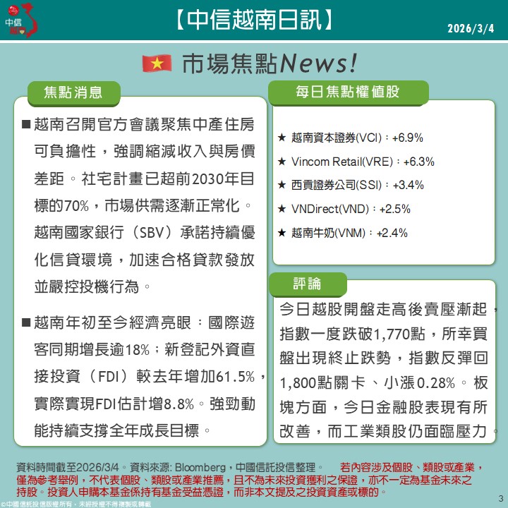 ◆ 越南市場快評: