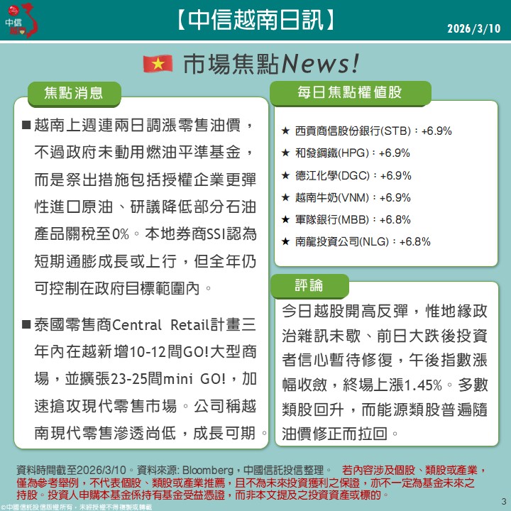 中信越南日訊| 03/10焦點消息