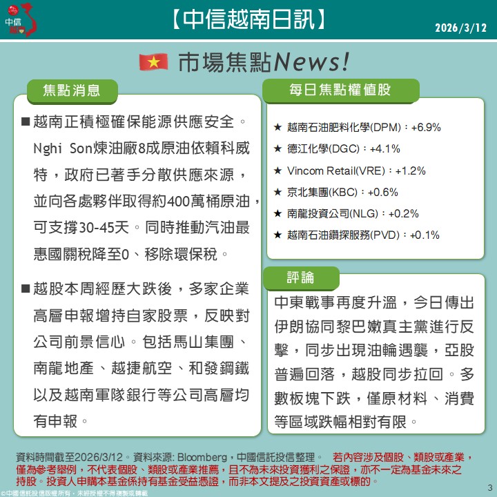 中信越南日訊| 03/12焦點消息
