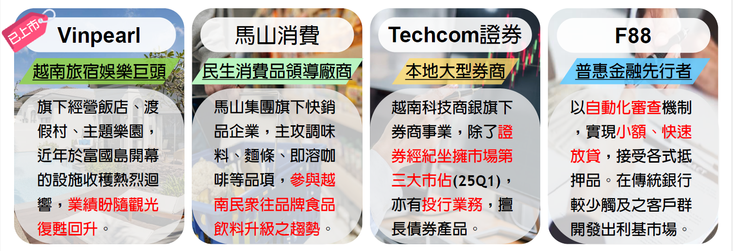 其中,值得留意的馬山消費,為越南民生消費品領導廠商,專注於快消品,計劃於2025年第四季度上市,該公司受益於電商及現代零售渠道的快速增長,預計IPO估值將達數十億美元。